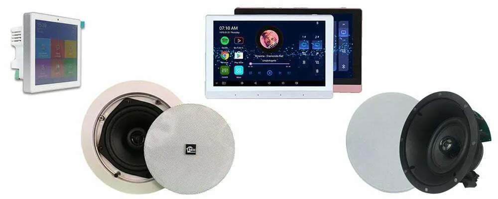 حال جدای از پنل های موسیقی دیواری ، اگر بخواهید سیستم صوتی کم هزینه تری را برای خود تهیه کنید ، می توانید از اسپیکرهای سقفی بلوتوثی نیز استفاده کنید که علاوه بر اینکه قابلیت پخش موسیقی از طریق بلوتوث را دارا می باشند می توان از طریق کابل AUX صدای تلویزیون را نیز در اسپیکرها داشت.